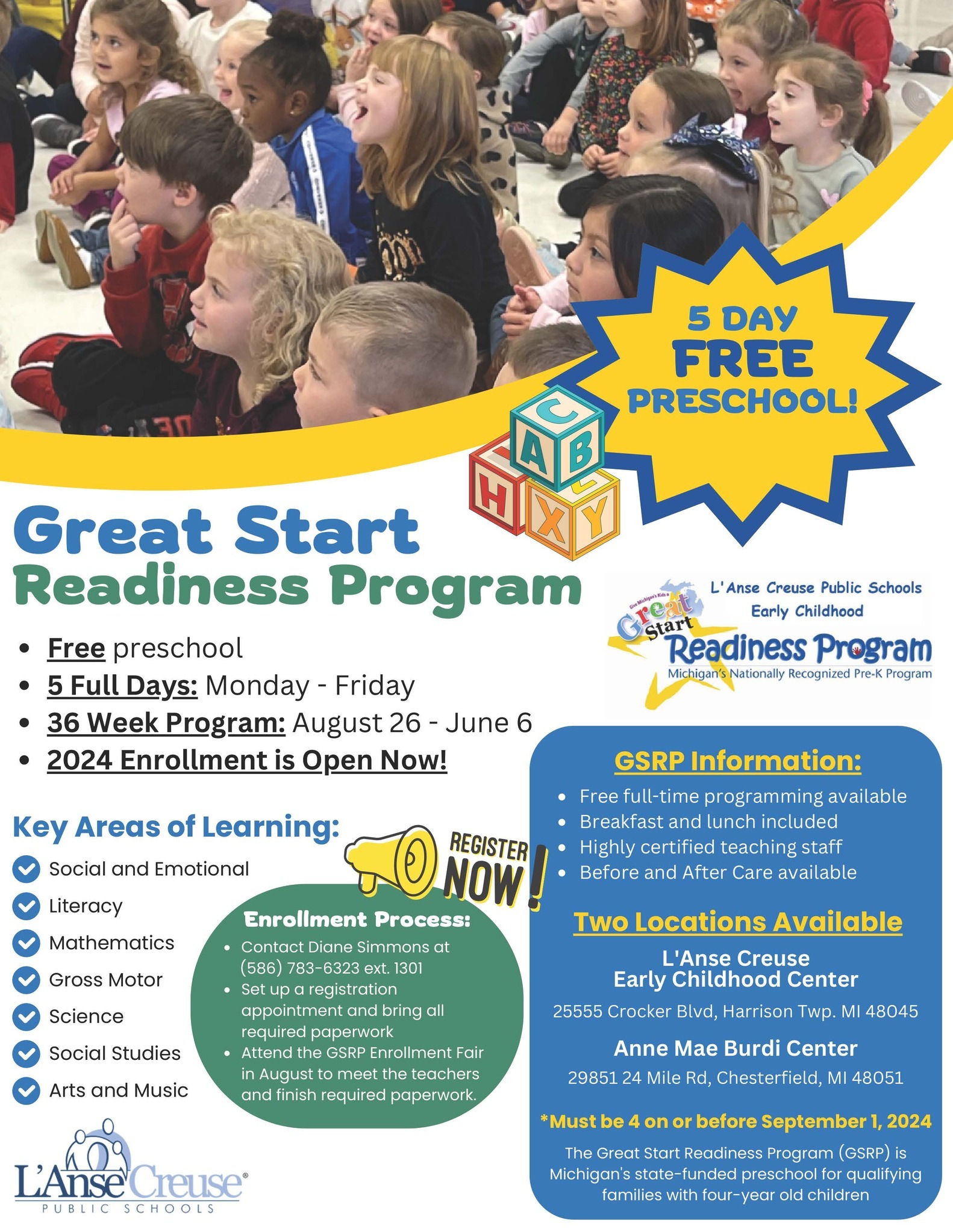 Calling all 2025-2026 kindergarteners, Class of 2038! It is extremely important that all kindergarten students are on our list. Please call the Graham Elementary school office at 586-783-6460 to be sure your new kindergarten student is on our list. Click Here for the Kindergarten Enrollment Packet.